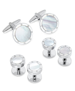 Sutton Men's Stainless Steel Mother-of-Pearl Stone Cuff Links