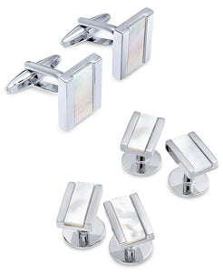 Sutton Stainless Steel Mother-of-Pearl Stone 2-Pc. Set Cuff Links