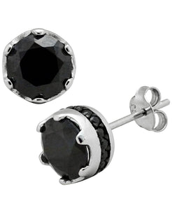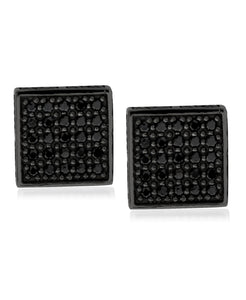 Men's Ruthenium Plated Sterling Silver Black Cubic Zirconia Square Stud Earrings