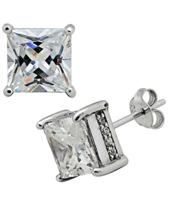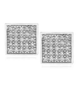 Men's Sterling Silver Crystal Cubic Zirconia Square Stud Earrings