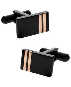 Sutton Stainless Steel Black Cufflinks with Double Rose Gold Stripe